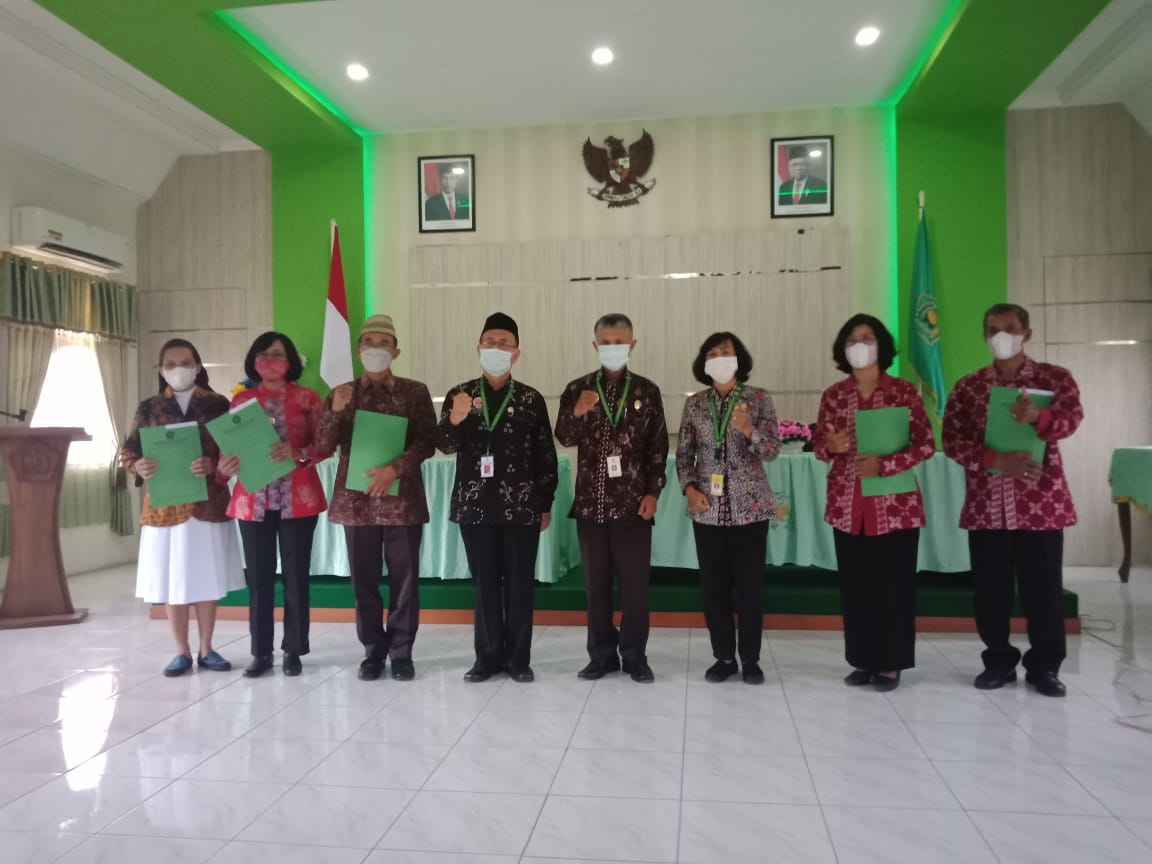 Usai doa pembuka yang dipimpin oleh Br. Ferdi MTB [selaku guru pendidikan agama di SMP Kanisius Pati] dilanjutkan dengan pengantar singkat oleh Ibu Sulastri sapaannya untuk memberikan kesempatan kepada Bapak Kepala Kantor Kementeriaan Agama, Kab. Pati untuk menyerahkan SK penyuluhan kepada 5 orang anggota penyuluh keagamaan Katolik untuk masa jabatan selama 3 tahun, 2022-2024.