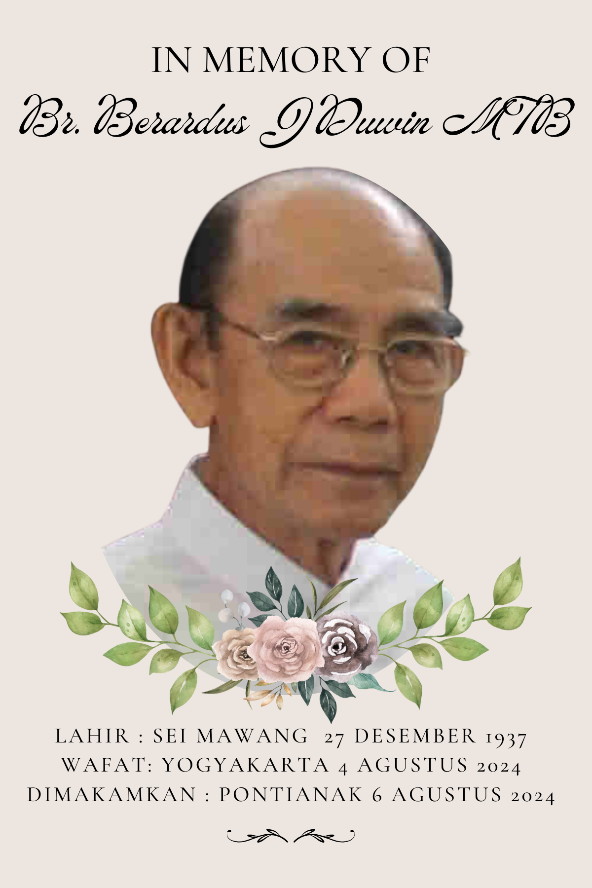 Entah Hidup entah mati kita tetap milik Tuhan. Br. Berardus Yakobus Duwin MTB adalah seorang yg sederhana dan setia dalam panggilanNya. Selalu menyerukan semangat sebagai bruder MTB yaitu simpliciter et confidenter.
